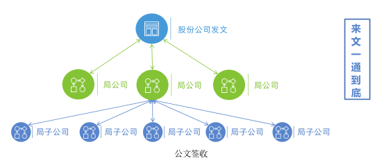 平台流程引擎通过互信中心,帮助中国中铁实现公文的上下贯通。无论公文从哪级单位发起,各单位均可在系统中进行签收,无需手动接收之后再上传到系统上。并且整个过程都可监控,快速跟踪公文状态。