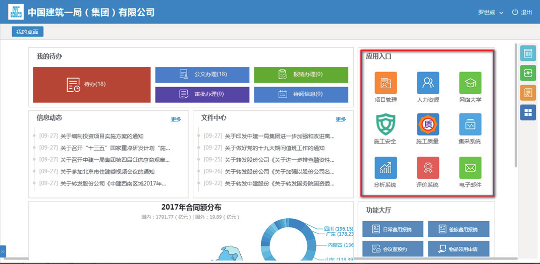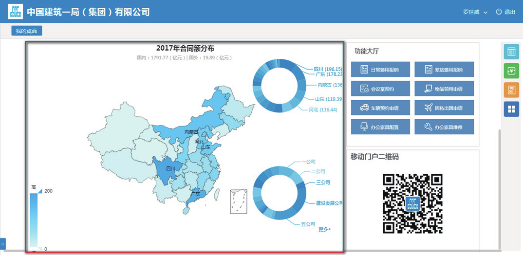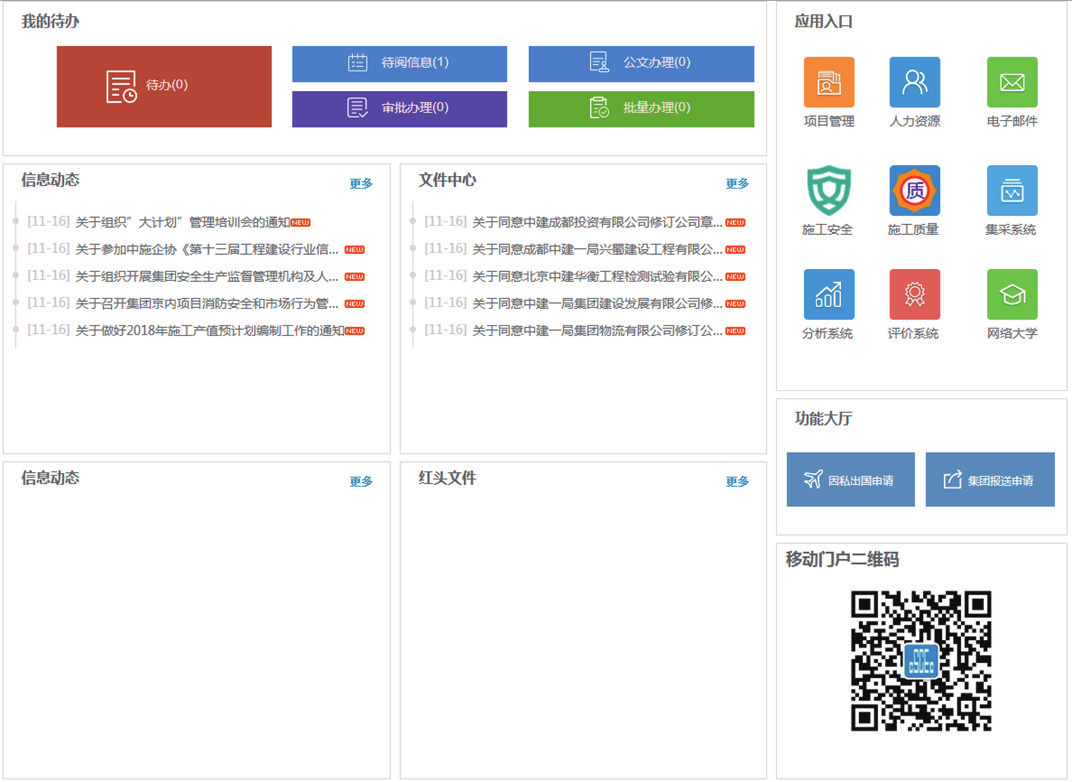 中建一局在 2007 年与304永利集团合作,部署实施了协同办公平GLinkWorks4.3,随着信息技术的发展及公司业务的需要,在 2017 年升级到了 GLinkWorks7.0。并在此基础之上,依托304永利集团提供的“协同 +”能力将各业务系统连接,以OA 组织架构为先决条件实现了单点登录、代办聚合、功能聚合;基于异构系统数据库统一,实现数据整合及业务应用为一体。通过异构系统的数据库开放,门户系统将各业务系统重点数据钻取、分析、统计,所生成结果以报表形式展现在各级门户上,同时结合 PC 端移动端数据同源,实现了随时随地随手办公的效果。真正为员工提供了快速发起通道,为辅助领导决策提供了有力支撑,最终实现集中管控业务、提供市场核心竞争力。