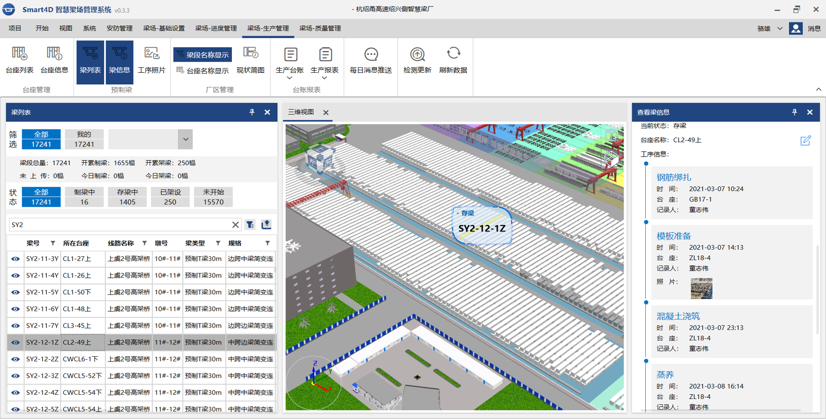 通过三维场布模型对梁场的场区设置、设备配置、生产工序进行综合展示。