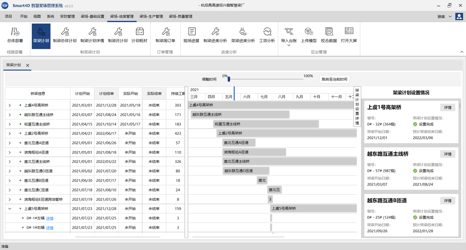 根据架梁顺序和产能,自动生成制梁总体计划。