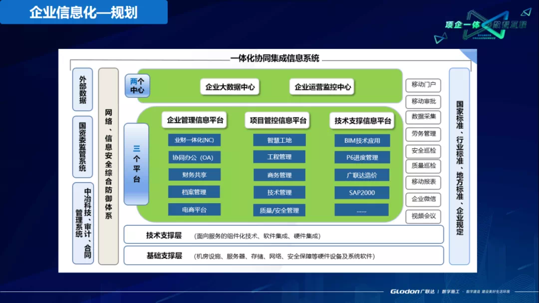 从公司2006年的财务系统到2008年的供应链系统,再到2010年建筑业资质就位,OA系统上线。这些属于单业态的信息化系统,每个业务系统都是垂直线条管理,按照业务线来走。