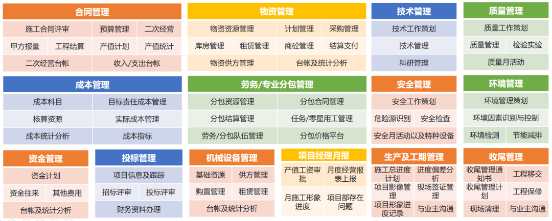 打通了集团、分公司、项目的数据链,公司可以实时查询生产项目经营数据,项目也可在线查看参考公司提供的资源。