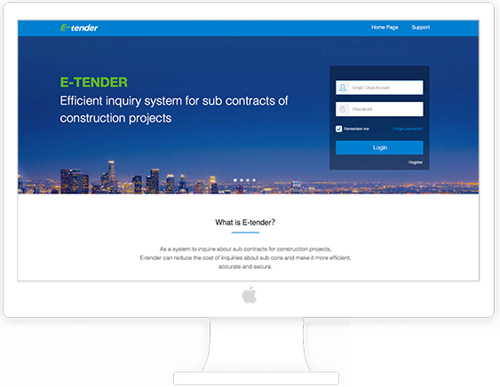 E-tender是一个处理建筑项目分包工程的询价系统,能够有效的降低分包询价成本,使分包询价过程更加高效、准确和安全。
