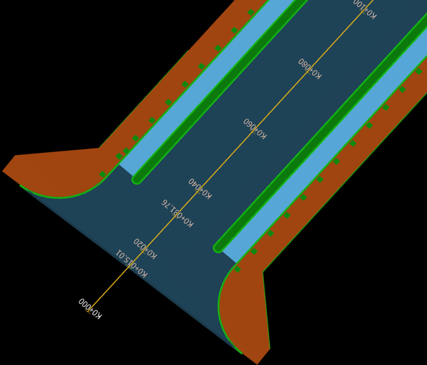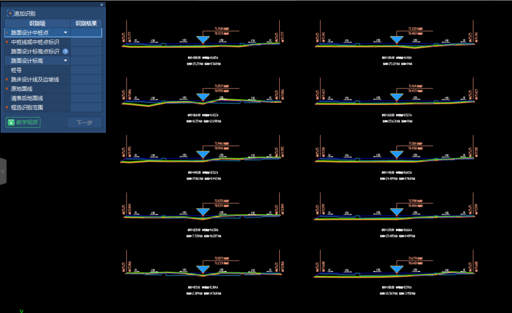 快速识别道路工程中所有路基横、纵断面图,快速建立路基三维模 型,计算路基土方工程量。