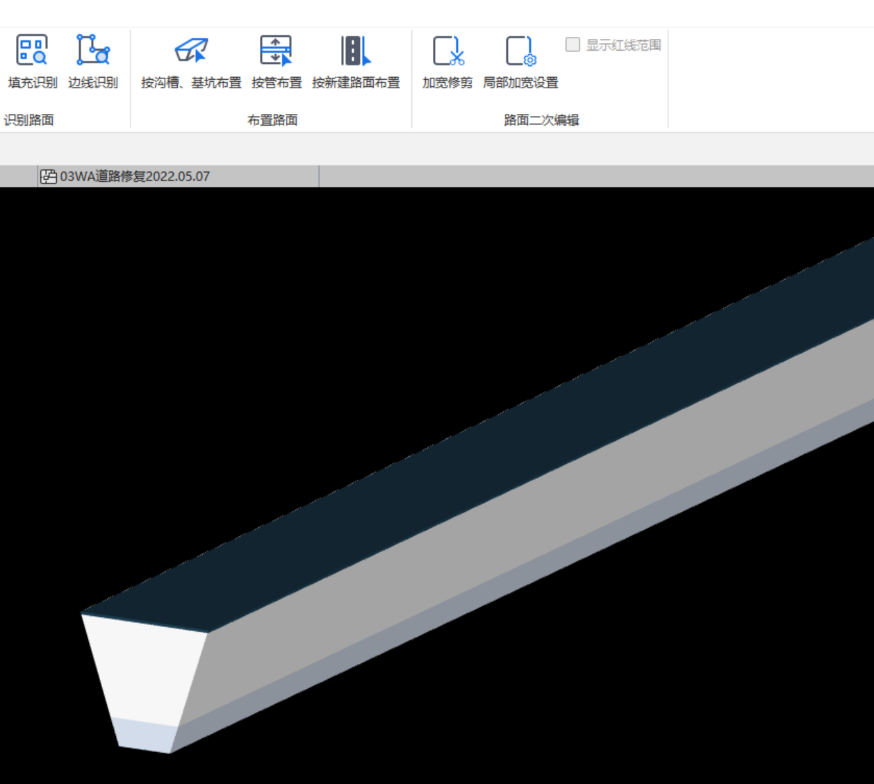 通过识别沟槽、基坑顶宽范围以及设置管道左右两侧拆除路面宽度快速布置拆除路面,大幅提升拆除路面布置效率。