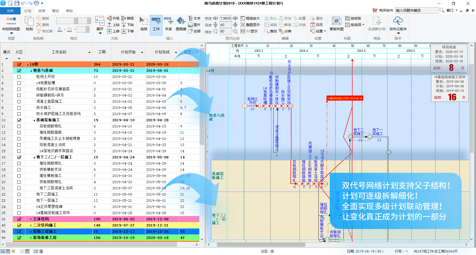分分钟支持计划逐级拆解细化!计划表现可粗可细、可拆可组,多级计划之间联动计算、牵一发而知全身,从此解决项目多级计划之间相互脱节、计划赶不上变化、计划和生产相脱节的问题!