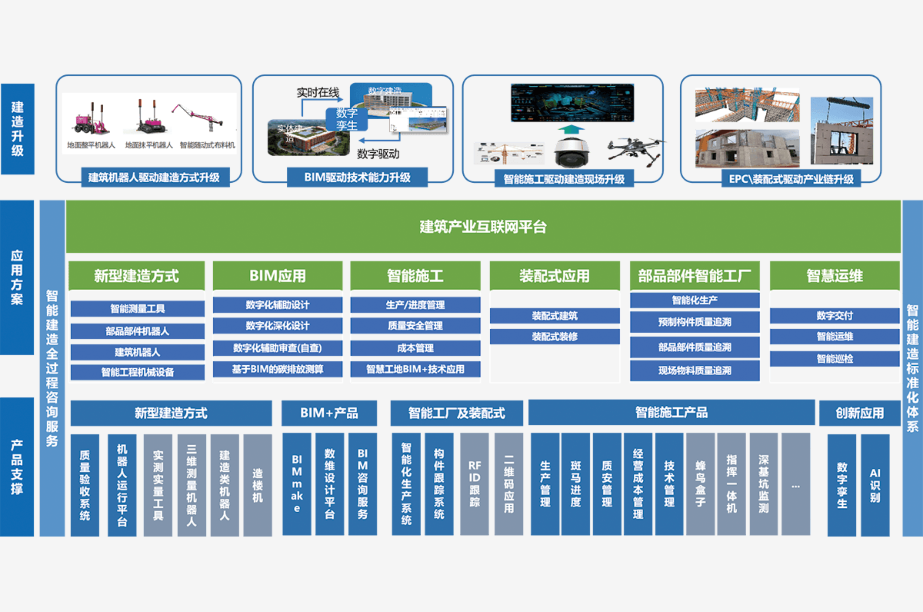 智能建造-打造建筑产业互联网平台304永利集团智能建造解决方案,涵盖BIM技术应用、机器人及智能装备、装配式及部品部件智能生产、智慧施工、产业互联网、数字运维等版块, 是现代信息技术与工程建造融合形成的工程建造创新模式。面向智能建造试点城市,打造智能建造项目标杆。 |