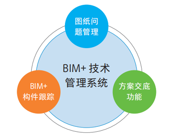BIM+ 技术管理系统以“管理升级、技术先行”为理念,是集图纸管理、方案管理及 BIM 应用为一体的施工技术策划和执行管理系统。产品主要包含图纸问题协同管理、技术方案编制与交底、构件跟踪三大产品模块,通过BIM 可视化技术,模拟施工方案的可能出现的各种问题和风险,降低项目实际成本;通过图纸问题的预警及管理,减少施工过程返工。