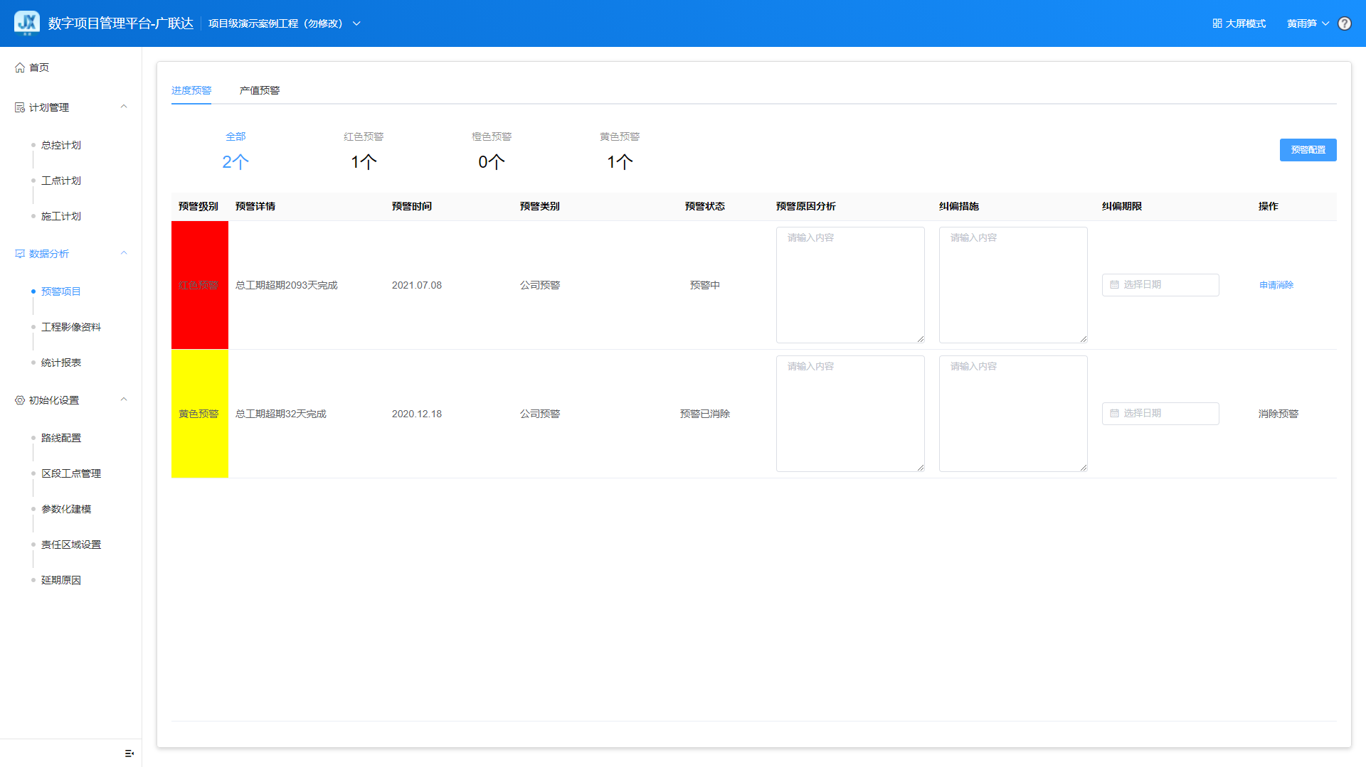产值统计、进度统计、班前教育统计、人员分析、质量/安全分析、风险分级管控
