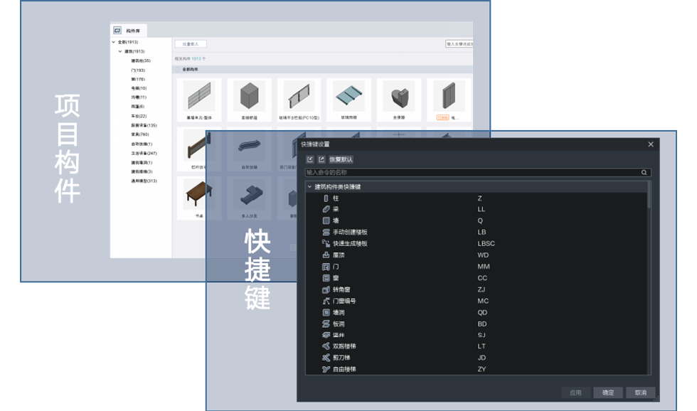 本地化配置、高效建模本土化构件、界面、快捷键等,学习成本低 |