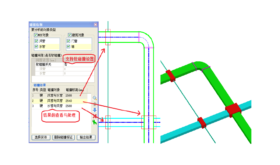 基于同一底层架构及统一的绘图标准设置。不同专业实体可互相识别,并进行三维碰撞检测等协同设计。