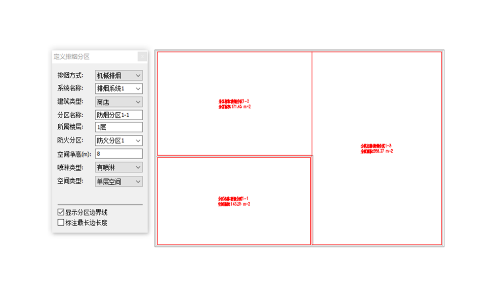 支持直接提取平面定义的防烟分区到软件计算;支持机械防排烟,自然排烟计算;多种系统对象: 楼梯间,避难层,地下汽车库,中庭,房间等; 支持计算结果赋回图面;可输出 Excel 格式报表和 Word 格式报表。