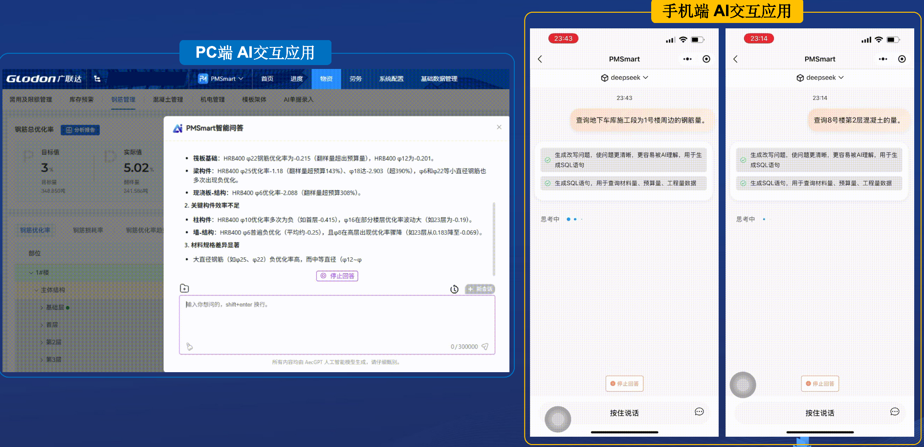 PMSmart已接入DeepSeek 等AI模型,可以基于本项目的实际业务数据情况,实现智能问答及分析决策(支持手机端及电脑端)
