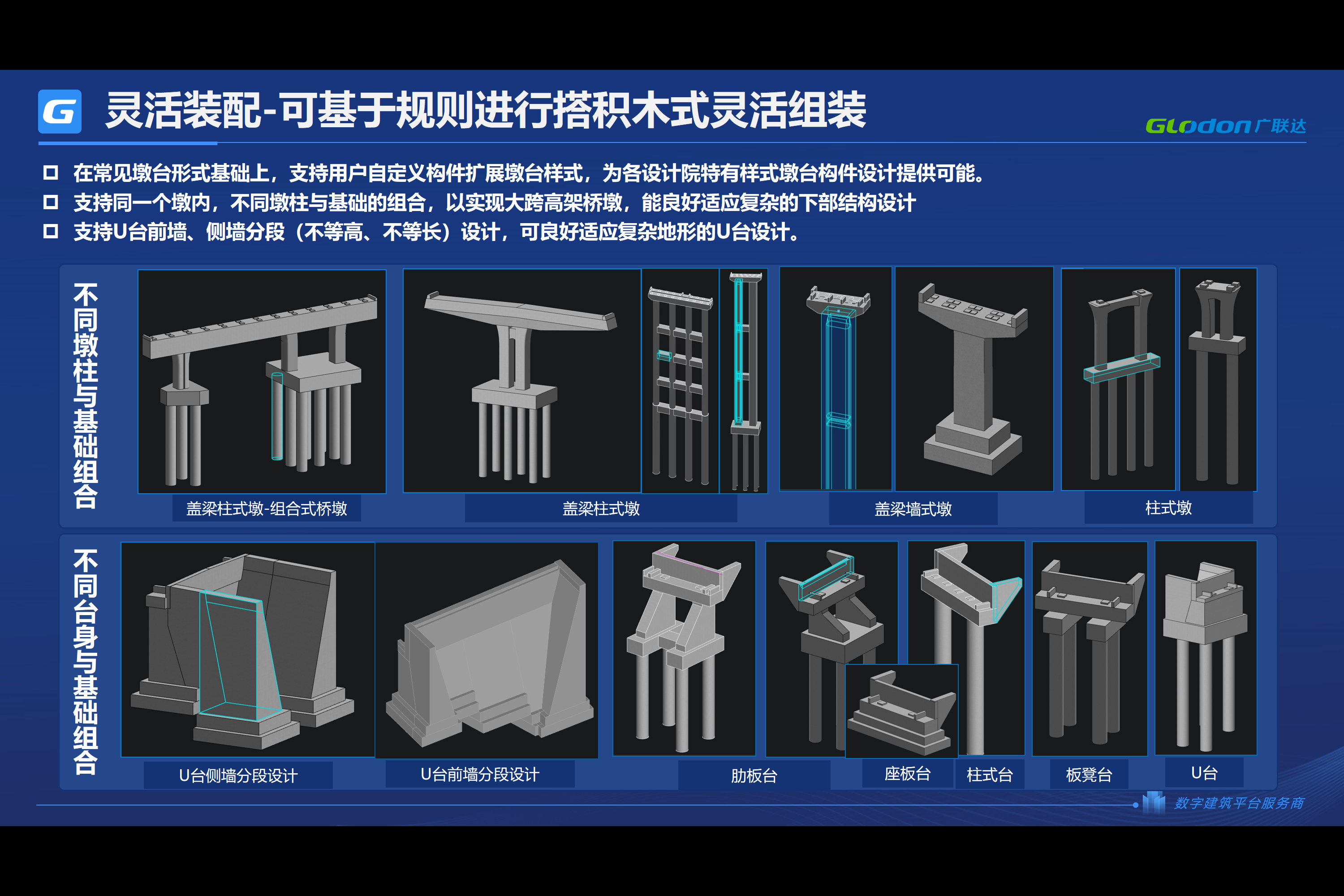1、构件资产库 2、上下部结构模板库 3、设计规则库