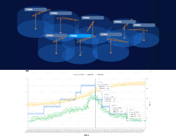 塔机运行数据全追溯平台全过程记录塔机日常运行数据,可按时间维度分析各塔机运行时长、在线情况、吊次情况、告警分析等,通过准确及时的数据分析支持管理决策,提升对工程现场的远程监督管理水平,并为企业积累塔机数据库提供依据。