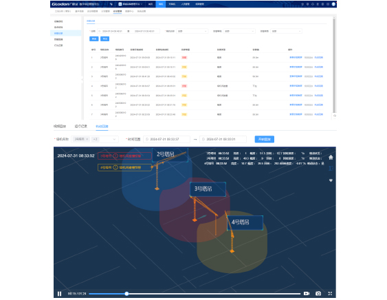 安全风险可追溯平台记录塔机运行过程中的各类风险告警数据,对于出现的事故可随时通过平台找到对应风险记录,查看告警时的参数,并通过轨迹回溯、视频回溯等方式多方位还原运行过程。