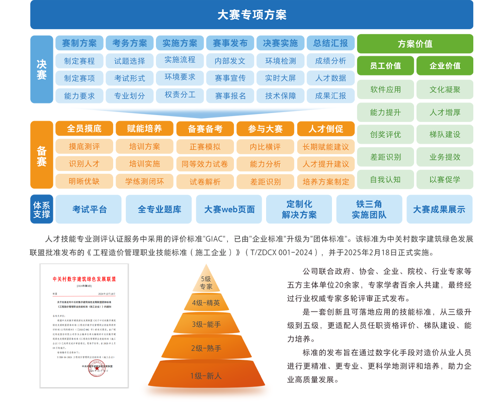 核心价值:①线上竞赛+培训+线下决赛闭环 ②支持10万人在线答题,功能多样 ③积分兑换考试次数,实时排行榜激励学习 ④500+真实工程案例库,支持赛培一体 ⑤AI赋能解析,拓展知识覆盖