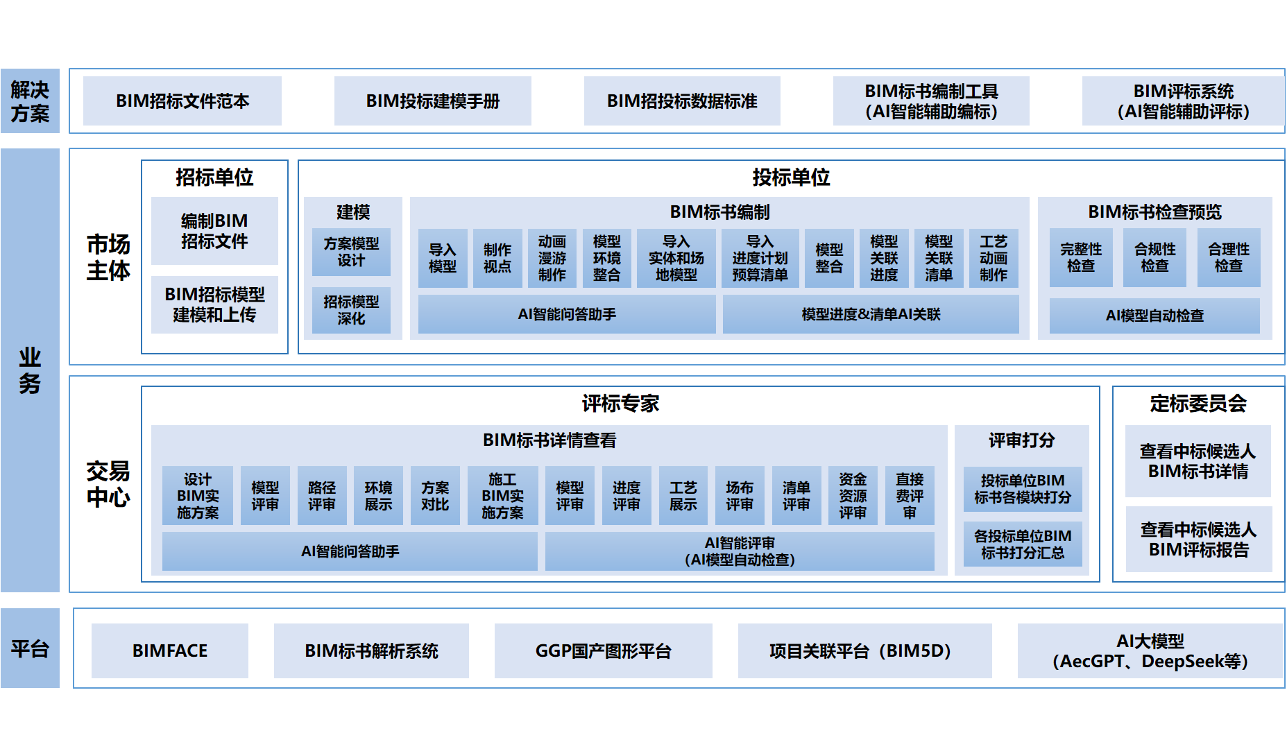 从公共资源交易三平台,BIM招投标,AI智能解决方案,到全省一张网,打造行业数字化智能体。